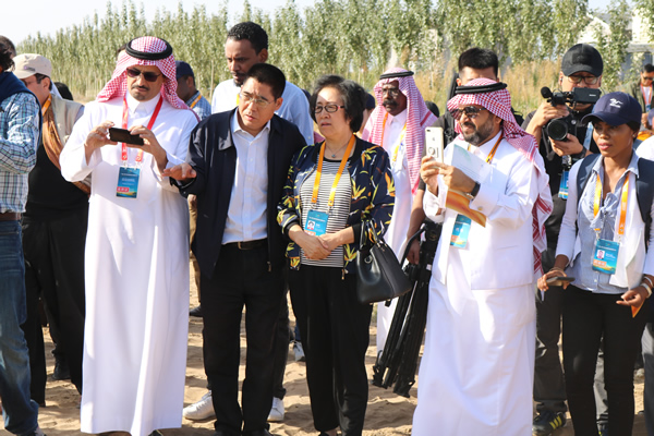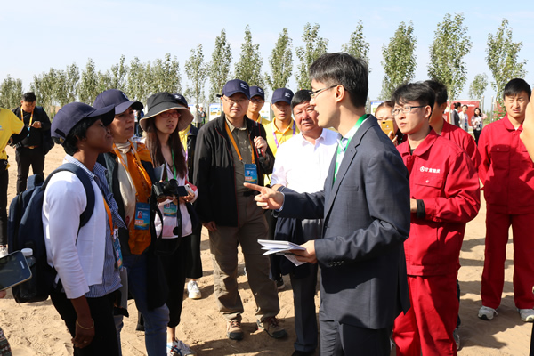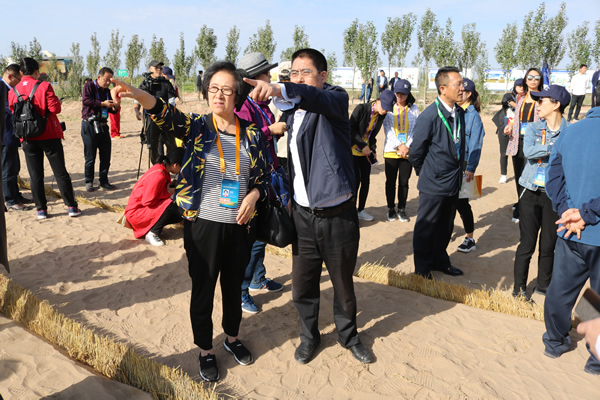 “一帶一路”生態(tài)治理民間合作國際論壇代表考察甘肅建投全國荒漠化防治(機械治沙工程)試驗示范基地