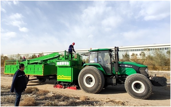 2024年9月,“智能化硬質(zhì)草沙障固沙機(jī)”經(jīng)甘肅省工業(yè)和信息化廳評(píng)審認(rèn)定,技術(shù)水平達(dá)到國(guó)內(nèi)領(lǐng)先。該產(chǎn)品采用國(guó)內(nèi)首創(chuàng)的硬質(zhì)沙障材料栽植技術(shù),創(chuàng)造性地提出硬質(zhì)草沙障的栽植技術(shù)理念,采用彈性換向加持機(jī)構(gòu)、開(kāi)溝器植入、八工位脈動(dòng)旋轉(zhuǎn)料倉(cāng)機(jī)構(gòu)的設(shè)計(jì)方式實(shí)現(xiàn)了硬質(zhì)草沙障的栽植技術(shù),解決了傳統(tǒng)散裝沙障材料難以布設(shè)的問(wèn)題。